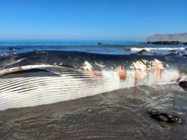 Encuentran ejemplar de ballena fin de 16 metros muerto en la costa de Tocopilla