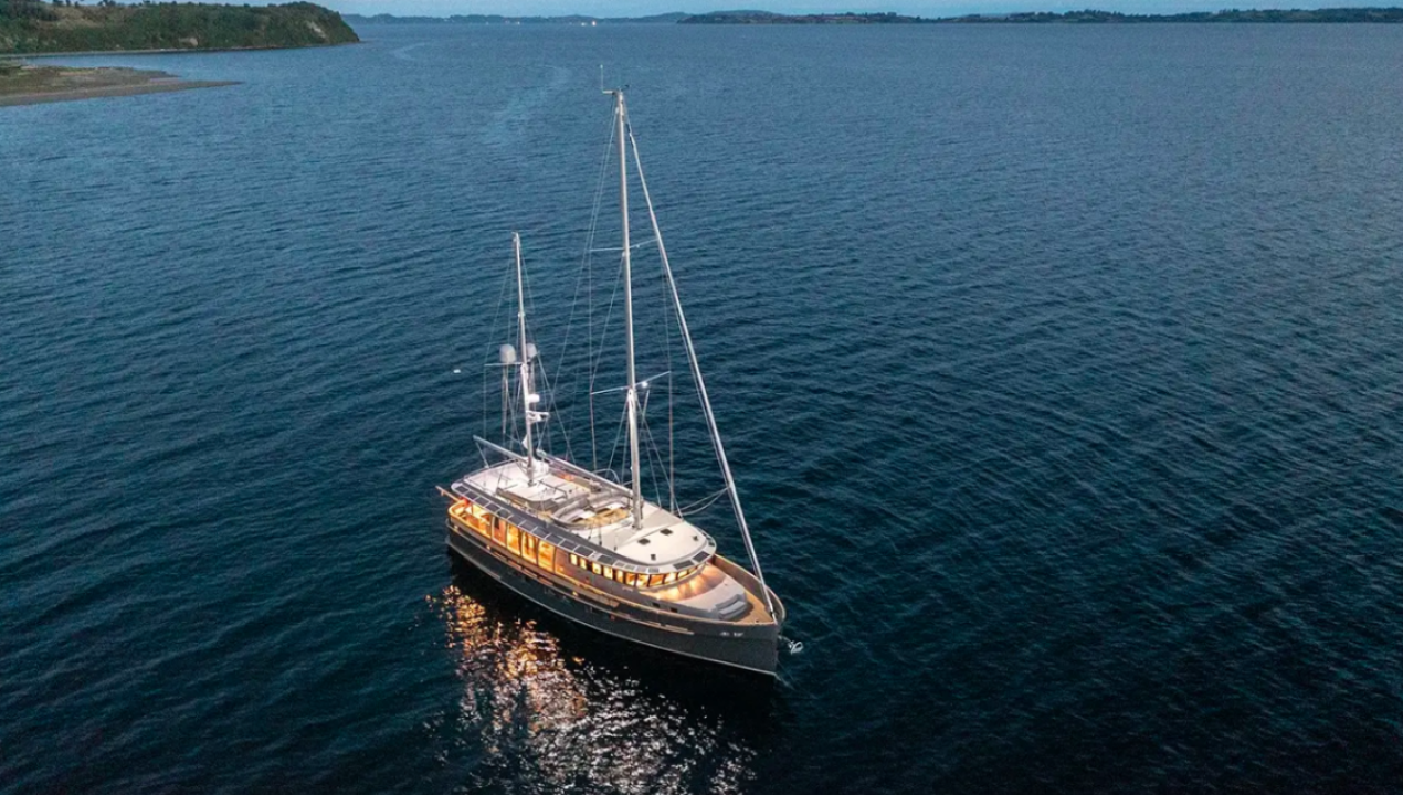 Ideado hace más de una década y materializado durante la pandemia, El Cachalote se construyó en la península de Chiloé por el astillero NavikChile, combinando motores, velas y hélices de paso variable, lo que reduce de forma significativa el consumo de combustible.